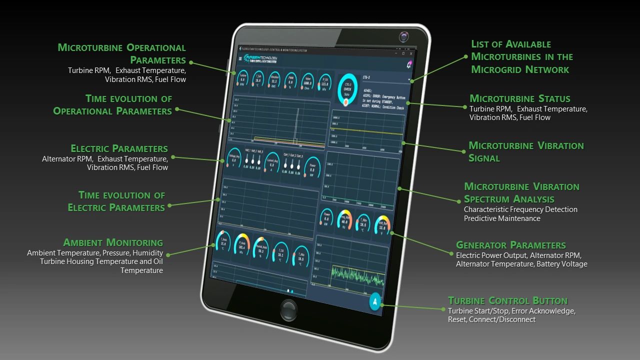 Florestan Technology Microturbines incorporate a built-in microcontroller system with sensors and wireless communication capabilities, enabling remote control and monitoring from Android, iOS, or Windows devices to remotely optimise complex energy network dynamics and perform predictive maintenance.